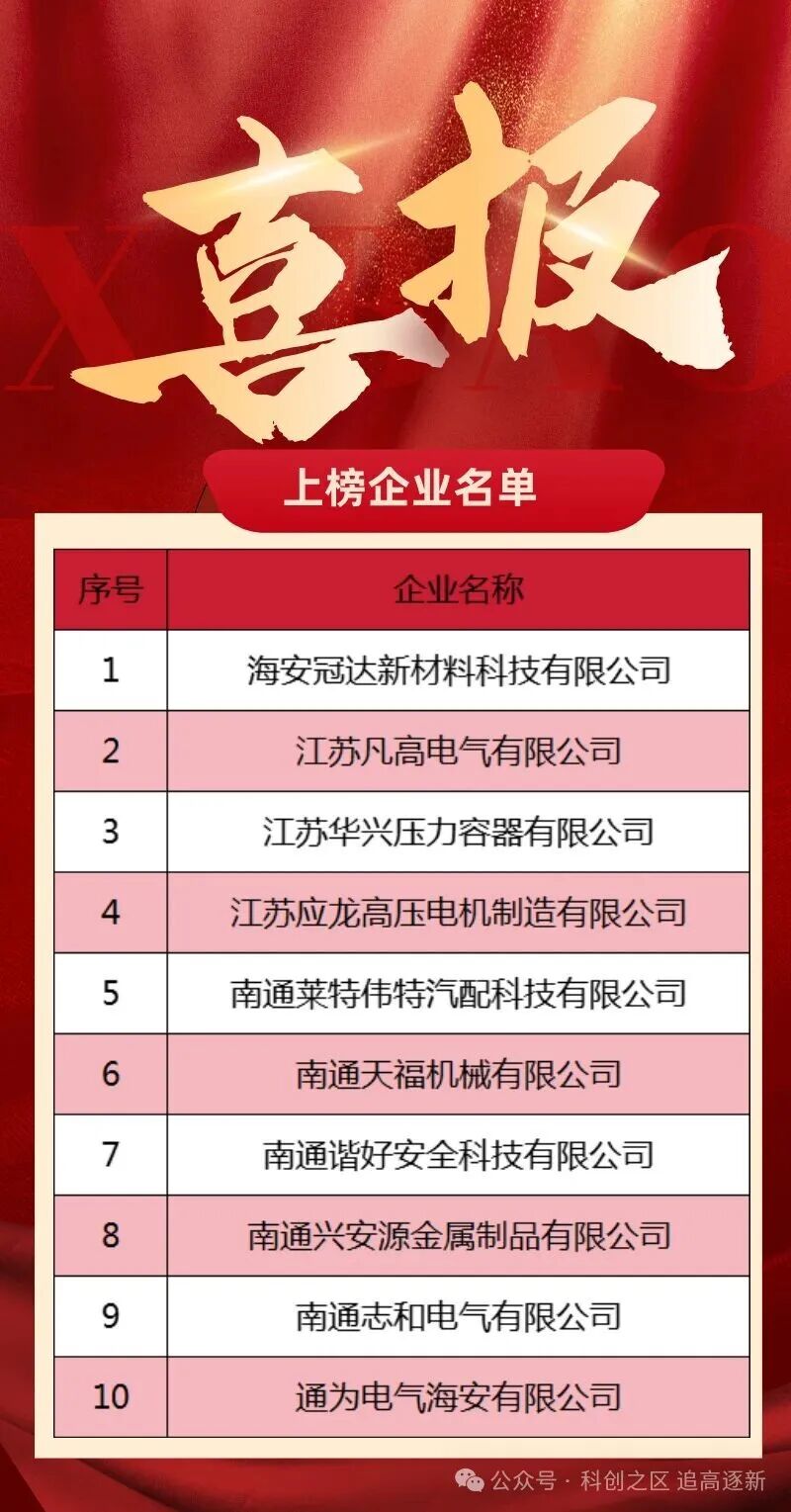 The Jiangsu Province New Productivity Promotion Center recently released the results of its 2025 assessment of Jiangsu Province's unicorn and gazelle enterprises. Ten companies from Hai'an High-tech Zone made the list, placing Hai'an City first and setting a new record for the number of selected companies.